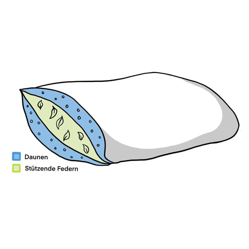 Dieses 3-Kammer-Kissen kombiniert die Weichheit von Daunen mit der Stützkraft von Federkissen. Der Kern besteht aus elastischen Gänse-Federchen, während die oberen und unteren Kammern mit wunderbar weichen Gänsedaunen gefüllt sind. Das Ergebnis ist ein absolutes Premium-Kissen, das höchsten Komfort bietet.